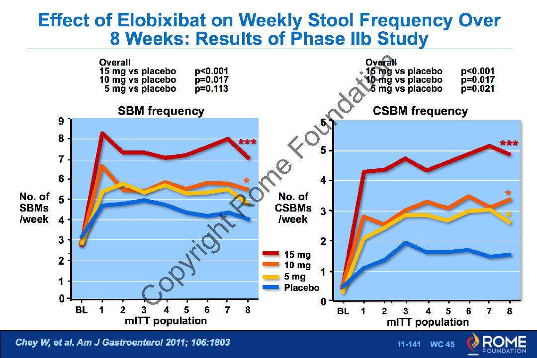 Bowel 141 – Effect of Elobixibat on Weekly Stool Frequency Over 8 Weeks