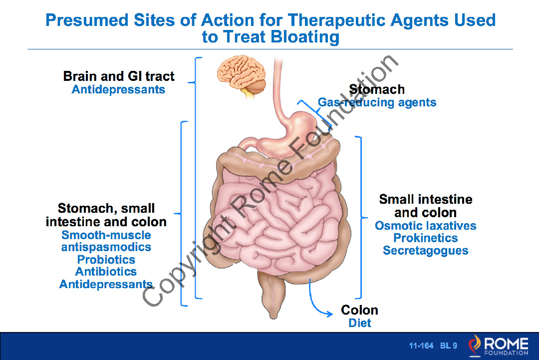 Bowel 164 - Presumed sites of action for therapeutic agents used to treat bloating quantity